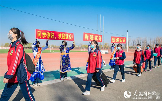 設(shè)置測(cè)溫消毒通道、實(shí)行錯(cuò)峰分餐制、增設(shè)臨時(shí)隔點(diǎn)……4月26日,內(nèi)蒙古呼和浩特市玉泉區(qū)教育局多措并舉織密疫情防控安全網(wǎng)的前提下,高一、高二年級(jí),初一、初二年級(jí)有序返校復(fù)學(xué)。這是該區(qū)第二批次學(xué)校開(kāi)學(xué),高三、初三年級(jí)已于3月30日復(fù)課。(丁根厚 攝)