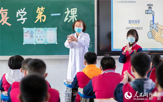 內(nèi)蒙古呼和浩特市第十二中學(xué)校醫(yī)為學(xué)生講解疫情防護(hù)知識(shí)和衛(wèi)生常識(shí),上好開(kāi)學(xué)第一課。