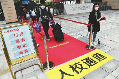 4月23日,成都高新實(shí)驗(yàn)中學(xué)住校的高三學(xué)生像往常一樣,戴著口罩從寢室前往教室。他們按照間隔一米的要求,有序排隊(duì)依次接受額溫槍監(jiān)測。體溫監(jiān)測正常的學(xué)生分班、分線路進(jìn)入教室,體溫異常的學(xué)生再次經(jīng)紅外熱成像儀監(jiān)測,如體溫正常,仍按照指定路線進(jìn)入教室,如體溫異常則在學(xué)校保健老師的帶領(lǐng)下,進(jìn)入校門口旁邊的留觀室進(jìn)行觀察,在保健老師和校醫(yī)的指導(dǎo)下根據(jù)實(shí)際情況就醫(yī)做詳細(xì)檢查。