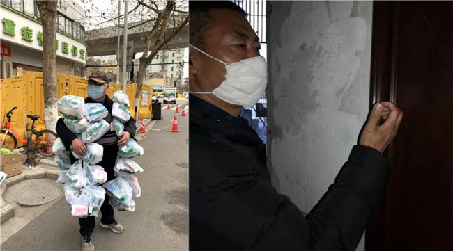 湖北武漢街頭邊,某社區(qū)網(wǎng)格員、被網(wǎng)友們親切稱為“藥袋哥”的豐楓把幾十個(gè)藥袋子串在一起掛在身上,照片被他人隨手拍下,感動無數(shù)網(wǎng)友。那天,他早上5點(diǎn)多就守在了藥房門口,12個(gè)小時(shí)后終于拿齊了近100份藥。四川攀枝花的巷弄里,57歲的李松江每天走訪200多戶,其中多是老年住戶。“要有耐心,敲門的力氣要大一點(diǎn),這樣老人才聽得見。”每天敲門上千次后,他的指關(guān)節(jié)紅腫破皮……