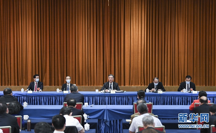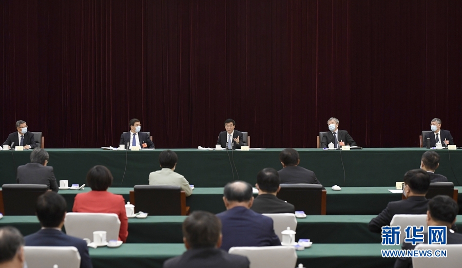 5月23日,中共中央政治局常委、中央書記處書記王滬寧看望出席全國(guó)政協(xié)十三屆三次會(huì)議的體育界、醫(yī)藥衛(wèi)生界委員并參加討論。 新華社記者 岳月偉 攝