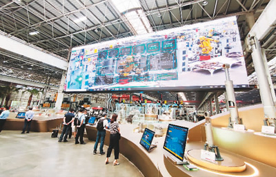 三一集團(tuán)“5G+廠區(qū)360度”監(jiān)控系統(tǒng)。新華社發(fā)