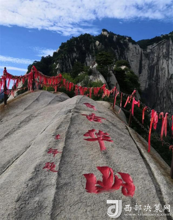眾所周知 “自古華山一條路”是一道奇觀。這條道路或越澗跨溪,或臨崖盤山,或入崖間深谷,或走峭壁嶺脊,或平坦或曲陡,或?qū)挸ɑ颡M窄,曲折變化,跌宕起伏,把人帶入意境深邃的萬(wàn)般景象之中。道路兩旁遍布的摩崖石刻,使人仿佛走進(jìn)一個(gè)書(shū)法藝術(shù)的走廊。一步一景一傳說(shuō),更使華山沿途披上了濃厚的文化色彩。