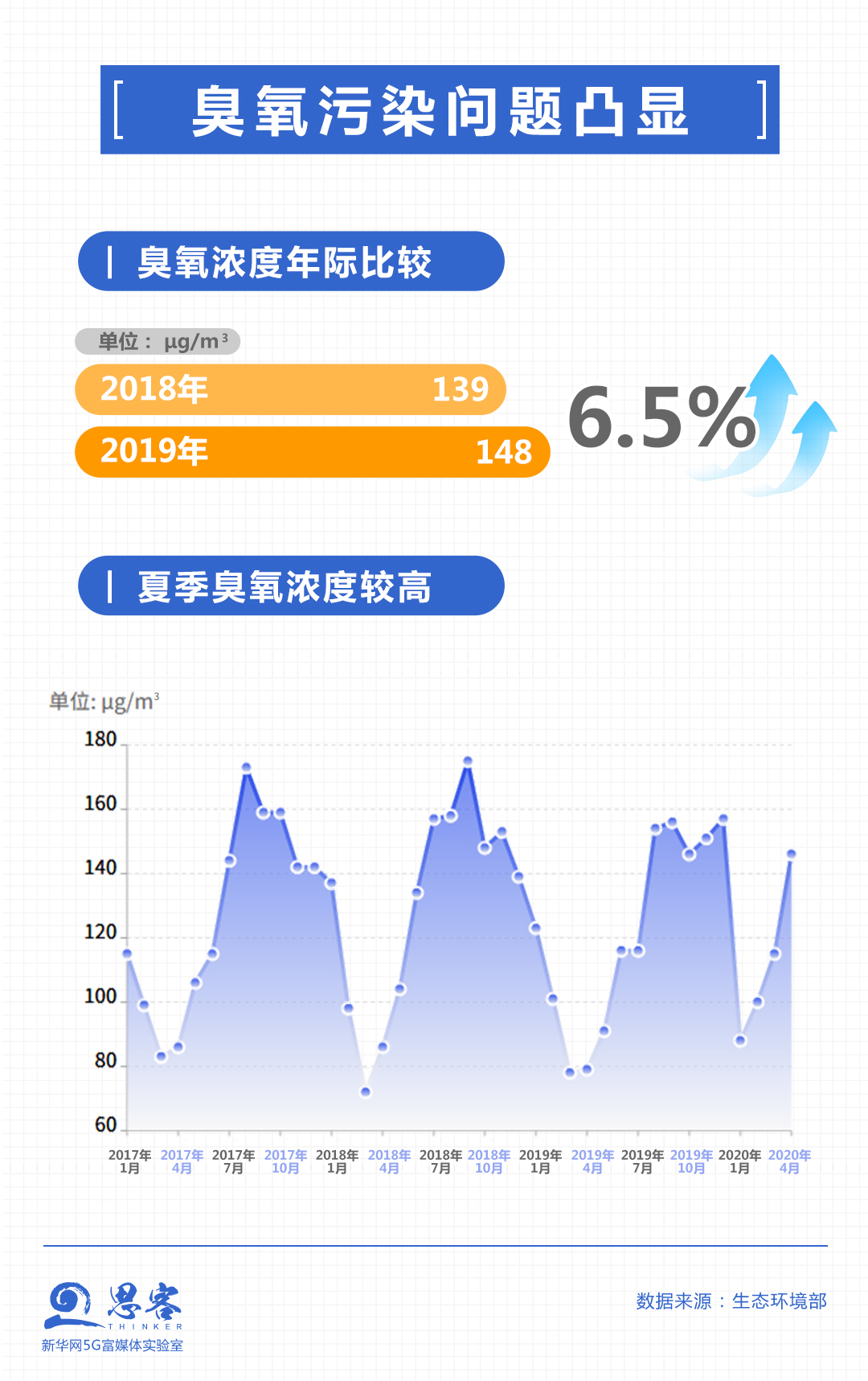 一到夏季,臭氧問題又顯現(xiàn)出來。高濃度臭氧會(huì)刺激和損害眼睛、呼吸系統(tǒng)等黏膜組織,危害不容小覷。對空氣質(zhì)量管理來說,臭氧超標(biāo)日數(shù)增多,已成為很多地區(qū)空氣優(yōu)良天數(shù)比例提升的最大拖累。2019年,全國337個(gè)地級及以上城市臭氧濃度同比上升6.5%,以臭氧為首要污染物的超標(biāo)天數(shù)占總超標(biāo)天數(shù)41.8%,僅次于PM2.5(占45%)。臭氧濃度大幅上升造成全國空氣質(zhì)量優(yōu)良天數(shù)比例同比損失2.3個(gè)百分點(diǎn)。