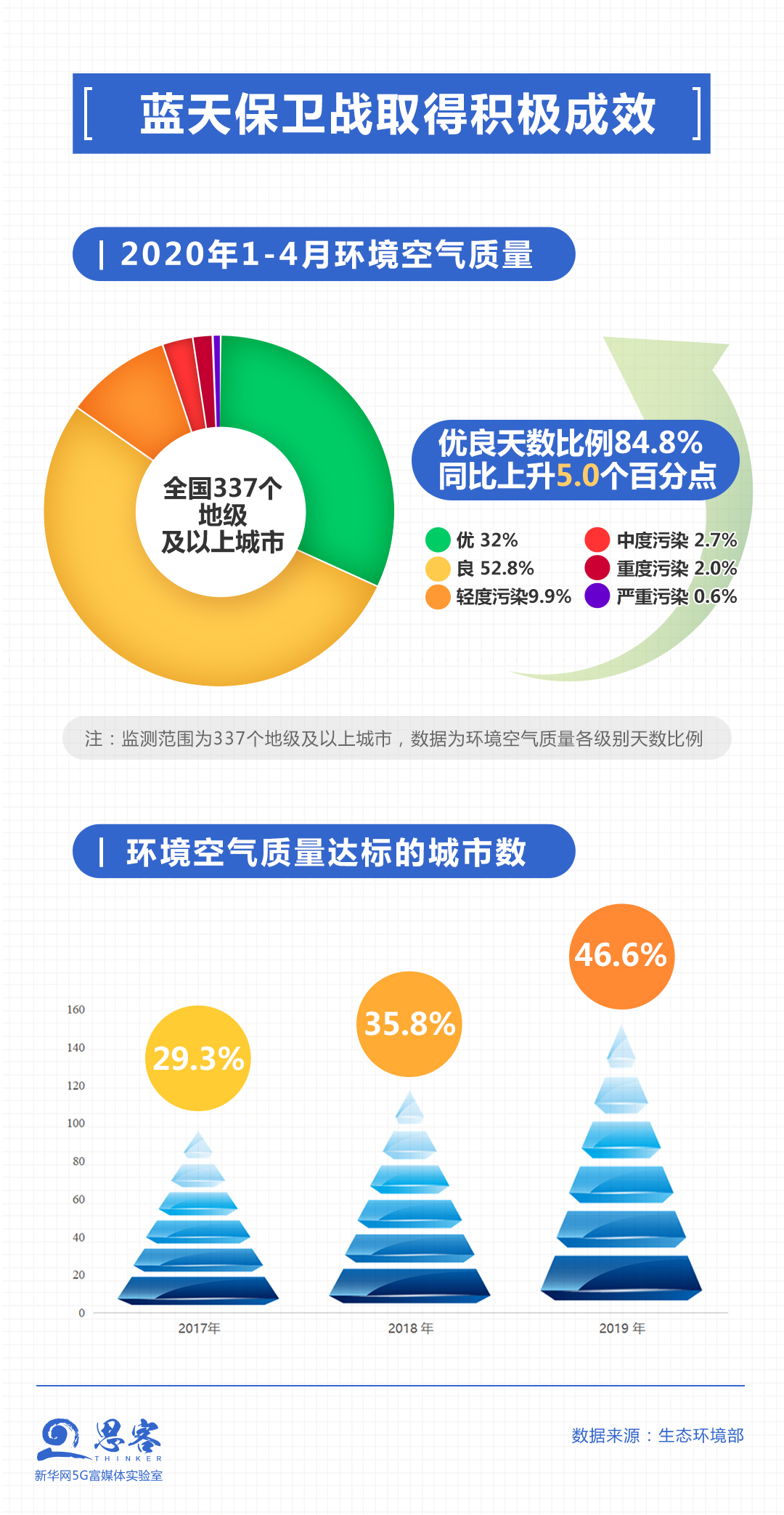 從2020年1-4月數(shù)據(jù)看,全國337個(gè)地級及以上城市在平均優(yōu)良天數(shù)、達(dá)標(biāo)率以及PM2.5 年均濃度三大指標(biāo)上均比上年同期有所改善。