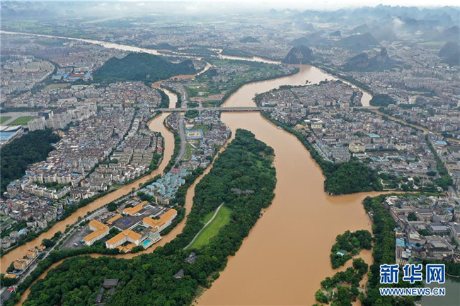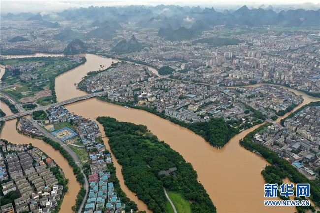 受持續(xù)強降雨影響,漓江桂林水文站于6月9日12時30分出現(xiàn)146.49米的洪峰水位,超警戒水位0.49米。