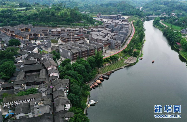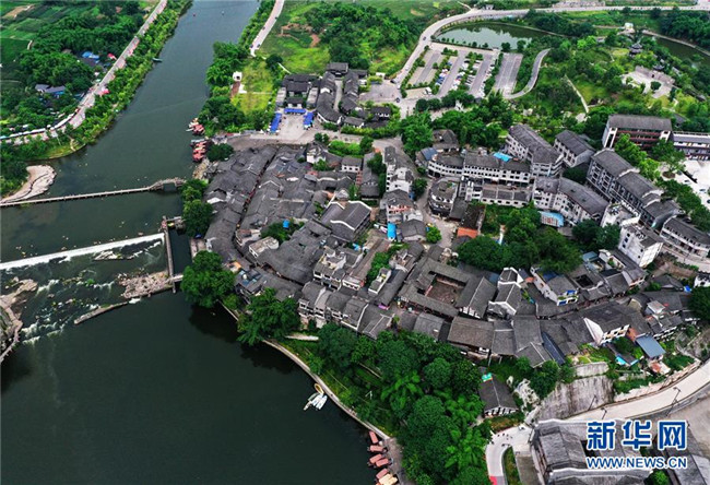 6月26日拍攝的萬靈古鎮(zhèn)(無人機照片)。 新華社記者 王全超 攝