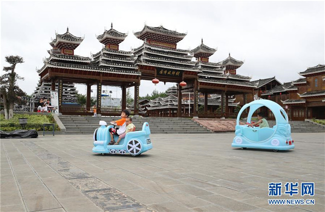 7月19日,在貴州省銅仁市玉屏侗族自治縣田坪鎮(zhèn)侗鄉(xiāng)風情園內(nèi),易地扶貧搬遷小朋友在玩耍。新華社發(fā)(胡攀學 攝)