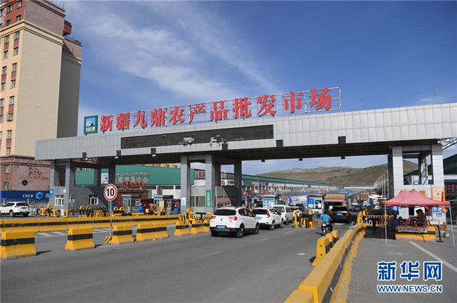 7月18日,在烏魯木齊市沙依巴克區(qū)新疆九鼎農(nóng)產(chǎn)品批發(fā)市場(chǎng),車輛人員登記進(jìn)入市場(chǎng)。 新華社記者 宋彥樺 攝