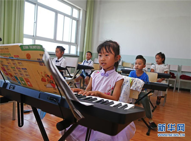 7月22日,學生在石嘴山市大武口區(qū)青少年學生校外活動中心音樂教室內(nèi)練習電子琴。新華社記者 賈浩成 攝