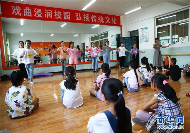 7月22日,學生在石嘴山市大武口區(qū)青少年學生校外活動中心教室內(nèi)學習秦腔。新華社記者 賈浩成 攝