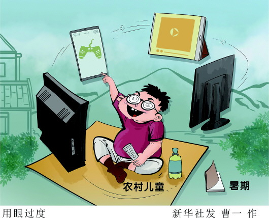 記者走訪發(fā)現(xiàn),暑期用眼過(guò)度的現(xiàn)象在不少農(nóng)村兒童中存在。有孩子跟著電視臺(tái)追劇,一看就是一整天;有家長(zhǎng)晨起上廁所,竟發(fā)現(xiàn)孩子“刷了一夜手機(jī)”;一位媽媽“吐槽”說(shuō),為了讓孩子少看電子產(chǎn)品,每天都要“斗智斗勇”:改密碼、藏充電線、沒(méi)收手機(jī)……