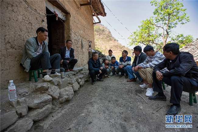 搬遷當(dāng)天,掛鉤幫扶干部和鄉(xiāng)鄰們上門道賀,掛鉤幫扶干部希望李本艷的父母——李守朝和陶大煥,能聽(tīng)從安排、努力工作、勤勞致富,給孩子一個(gè)幸福的未來(lái)(攝于4月2日)。新華網(wǎng)發(fā)(鮑禹 攝)