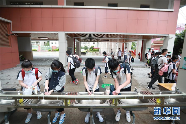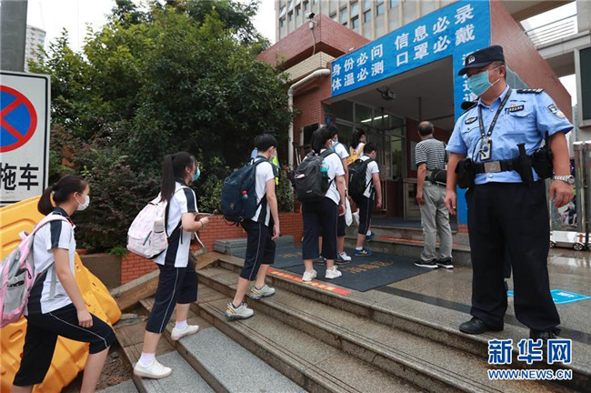 當(dāng)日,武漢初中階段初一、初二年級返校復(fù)學(xué),至8月30日結(jié)束。 新華社發(fā)(趙軍 攝)