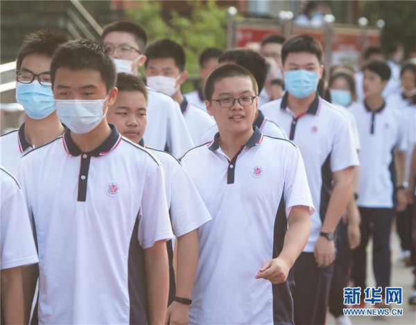 這是武漢中學的學生在開學典禮前(9月1日攝)。9月1日,武漢市2842所中小學、幼兒園迎來開學,涉及學生139.9萬人,百萬學子重返校園。新華社記者肖藝九攝