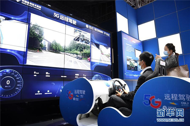 9月15日,工作人員在2020線上智博會上演示“5G遠程駕駛技術”。 新華社記者 唐奕 攝