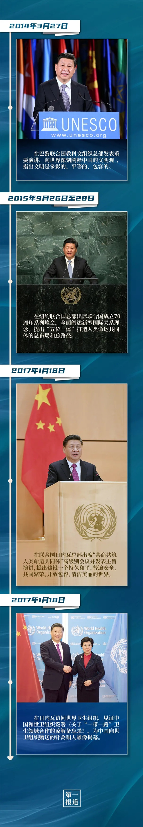 紐約聯(lián)合國總部、聯(lián)合國日內(nèi)瓦總部、聯(lián)合國教科文組織總部、世界衛(wèi)生組織,這些地方都留下了習(xí)主席的訪問足跡。站在聯(lián)合國講臺(tái),習(xí)主席闡述關(guān)于促進(jìn)世界和平發(fā)展的重要主張,表達(dá)對聯(lián)合國事業(yè)的堅(jiān)定支持,傳遞攜手各方應(yīng)對全球挑戰(zhàn)、深化多邊合作的真誠意愿。