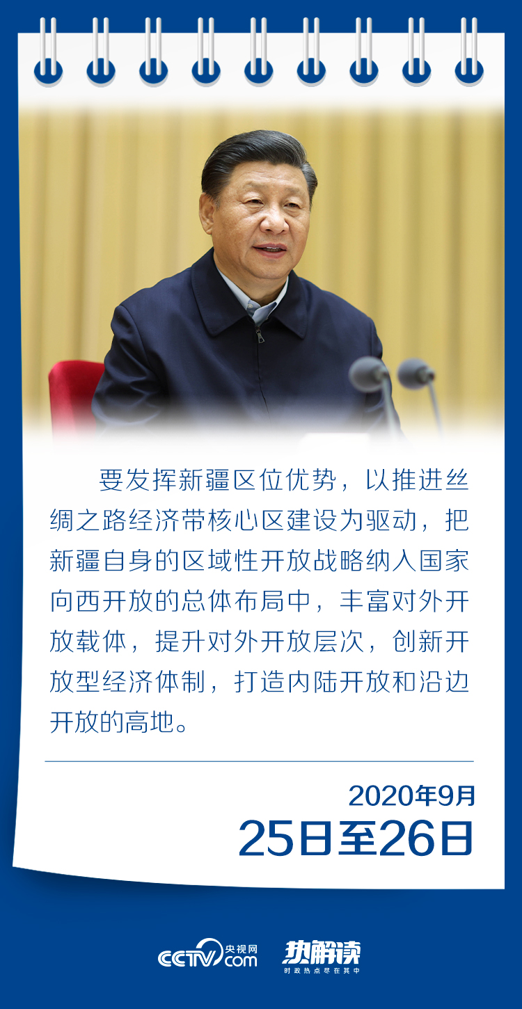 總書記說,要發(fā)揮新疆區(qū)位優(yōu)勢,以推進絲綢之路經濟帶核心區(qū)建設為驅動,把新疆自身的區(qū)域性開放戰(zhàn)略納入國家向西開放的總體布局中,豐富對外開放載體,提升對外開放層次,創(chuàng)新開放型經濟體制,打造內陸開放和沿邊開放的高地。