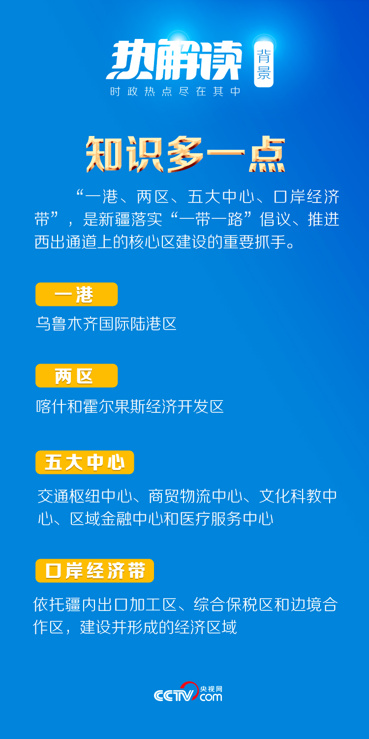 ——依托“一港、兩區(qū)、五大中心、口岸經濟帶”,新疆著力打造向西開放的橋頭堡。