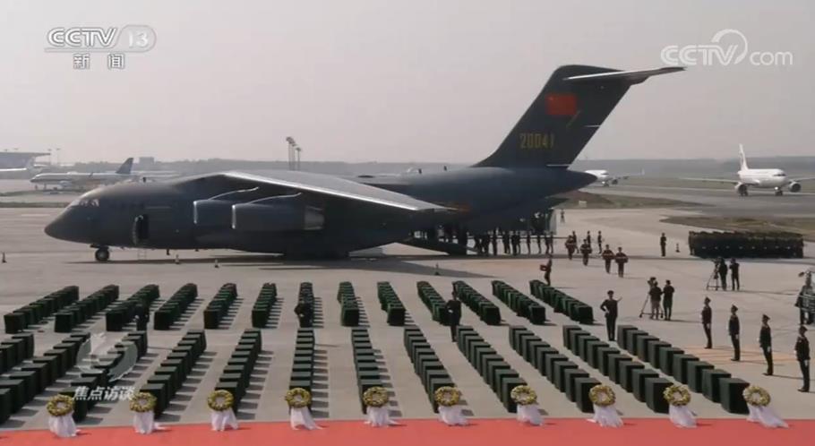 9月26日,中韓雙方在仁川遺骸臨時安置所舉行遺骸裝殮儀式,27日上午9點,中韓雙方在仁川國際機(jī)場進(jìn)行交接儀式,遺骸由空軍運(yùn)輸機(jī)接運(yùn)回國。