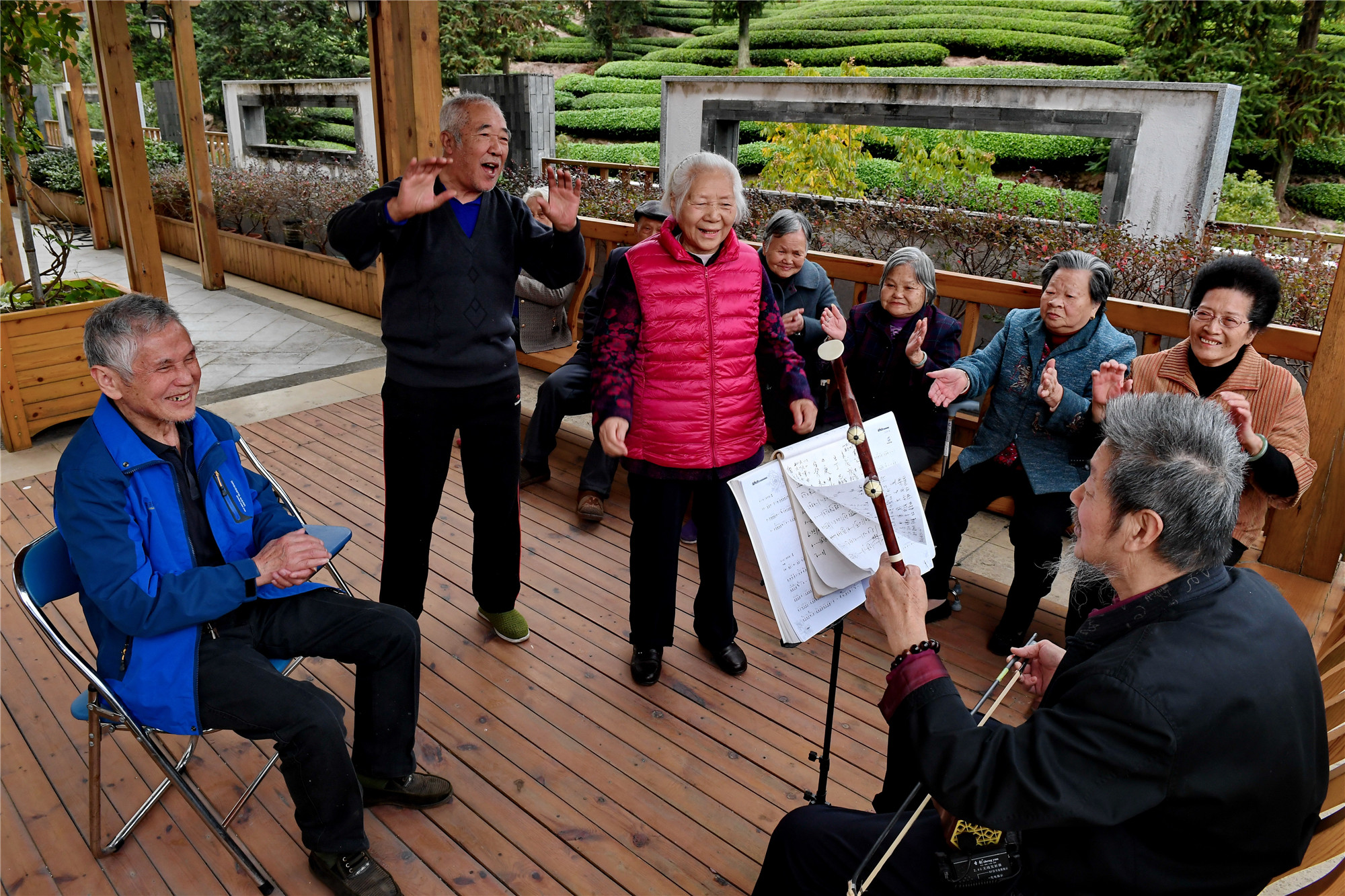 老人在福建省武夷山市社會(huì)福利中心唱歌(2018年11月1日攝)。新華社記者 張國俊 攝