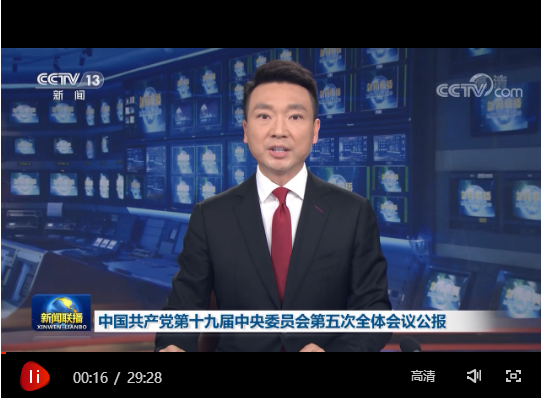 中國(guó)共產(chǎn)黨第十九屆中央委員會(huì)第五次全體會(huì)議,于2020年10月26日至29日在北京舉行。