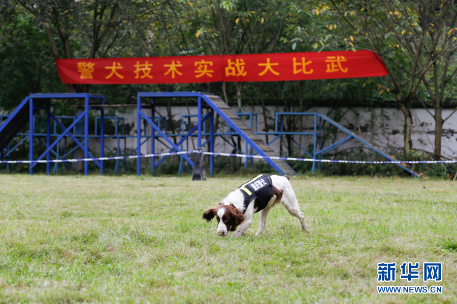 重慶市刑偵支(大)隊警犬部門開展實戰(zhàn)比武練兵。圖為草坪搜尋項目比賽中,警犬正在搜尋。新華網發(fā)(耿駿宇 攝)