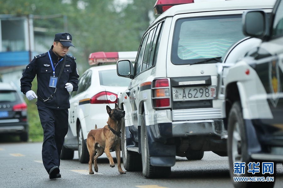 車輛搜爆項目中,警犬正在搜尋。新華網發(fā)