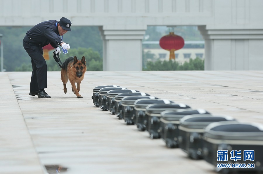 箱包搜爆項目中,警犬正在搜尋。新華網發(fā)
