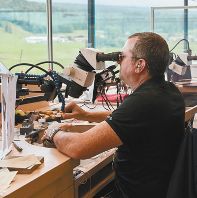 一名鐘表技師正在位于瑞士布拉蘇絲的愛(ài)彼鐘表博物館工作。 影像中國(guó)