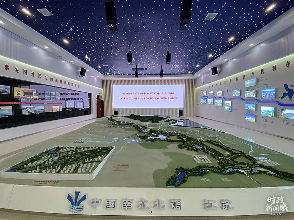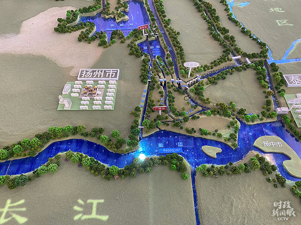 △江都水利樞紐展廳中的“南水北調(diào)東線工程”沙盤展示(總臺(tái)央視記者彭漢明拍攝)