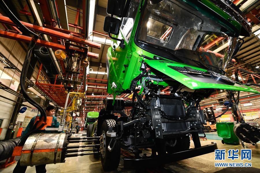 工人在位于濟(jì)南市章丘區(qū)的中國(guó)重汽集團(tuán)濟(jì)南商用車(chē)有限公司整車(chē)裝配生產(chǎn)線(xiàn)上作業(yè)(2018年1月25日攝)。新華社記者 郭緒雷 攝