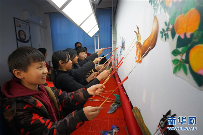 當(dāng)日,在河北省沙河市,當(dāng)?shù)仄び皯蛩嚾俗哌M(jìn)沙河市西油村小學(xué),為學(xué)生們展演皮影藝術(shù)、傳授技藝。今年以來,河北省沙河市積極開展“非遺進(jìn)校園”活動,組織沙河皮影戲、孔明鎖、孫氏太極拳等非遺項目進(jìn)校園活動80多場。