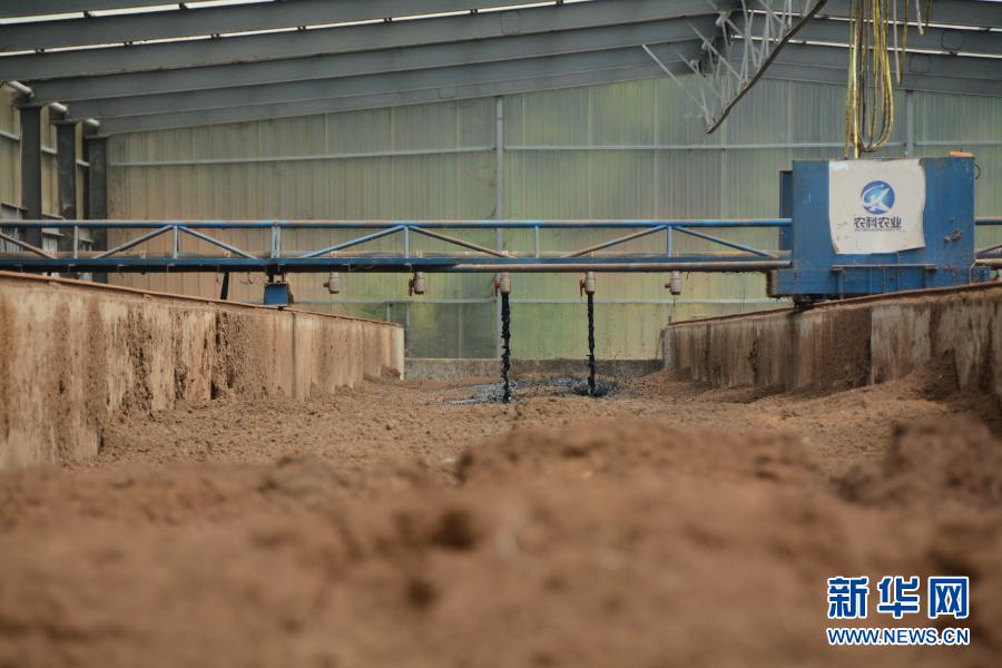 在福建省福清市永誠華多種豬公司豬場內(nèi),半自動化機械將收集的養(yǎng)殖糞污噴灑至墊料上。這是福建首創(chuàng)的“異位發(fā)酵床”技術(shù),發(fā)酵后的糞污可以作為有機肥源,并可以讓養(yǎng)殖場實現(xiàn)污染“零排放”(2019年8月12日攝)。新華社記者 林超 攝