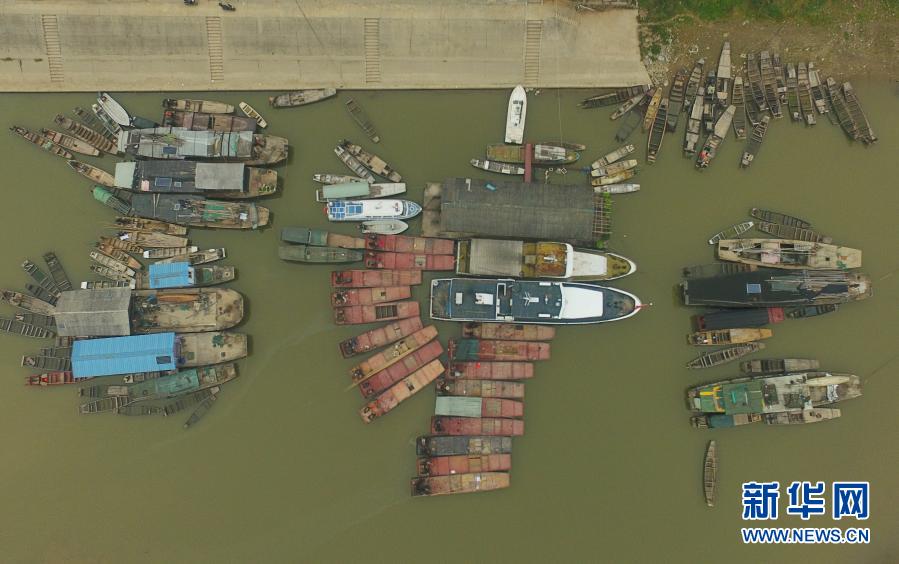 在湖南常德漢壽縣蔣家嘴鎮(zhèn),待回收的鐵漁船??吭诙赐ズ叄?019年12月17日攝,無人機照片)。2020年1月1日零時起,長江流域332個自然保護區(qū)和水產(chǎn)種質(zhì)資源保護區(qū)全面禁止生產(chǎn)性捕撈。新華社記者 薛宇舸 攝