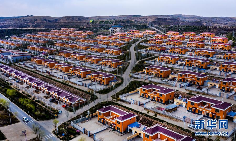 陜西省榆林市榆陽區(qū)黃家屹嶗村新貌(4月7日攝,無人機照片)。新華社記者 陶明 攝