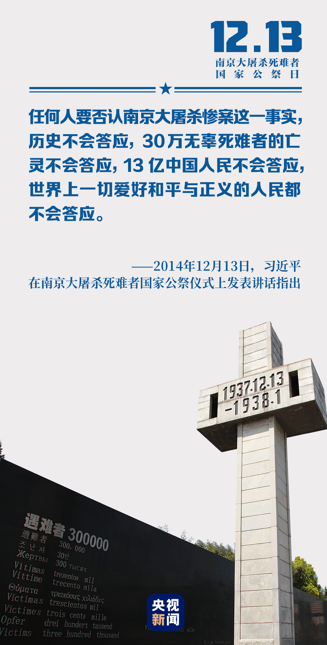 “牢記歷史、不忘過去,珍愛和平、開創(chuàng)未來”,6年前的12月13日,習(xí)近平總書記在公祭儀式上的講話深沉而堅定。