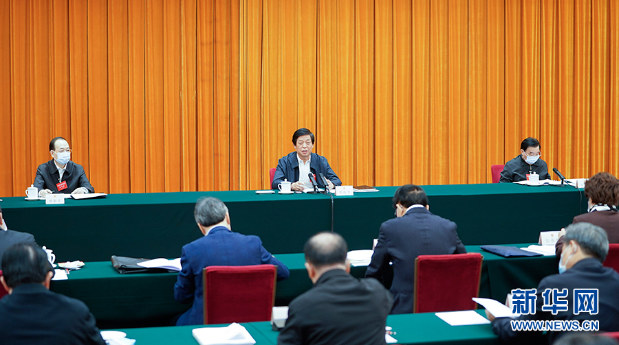 中共中央政治局委員、全國人大常委會(huì)副委員長王晨主持學(xué)習(xí)交流會(huì)。
