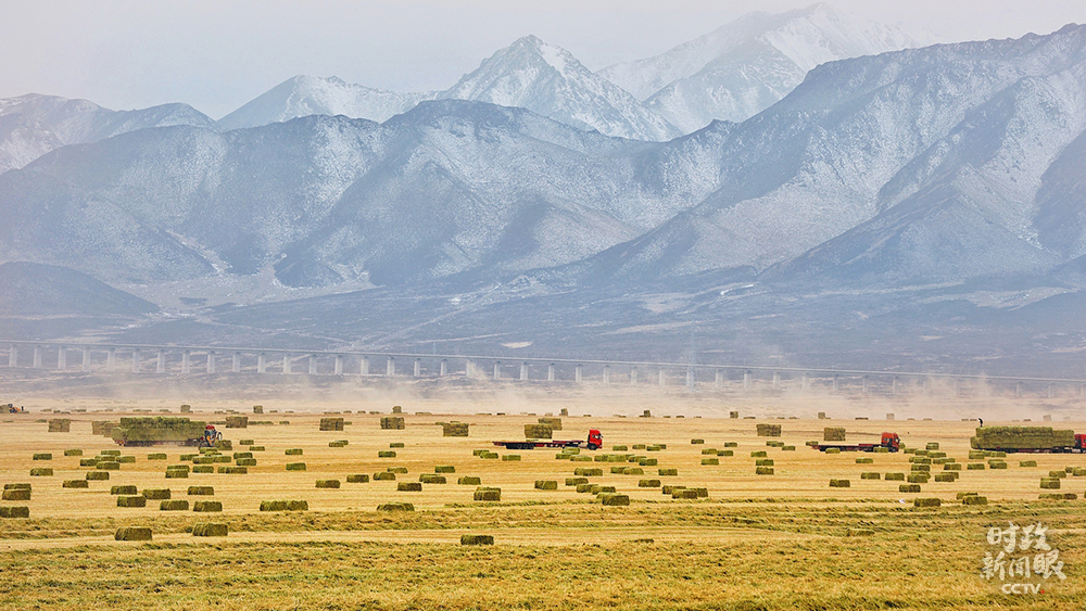 △11月中旬,祁連山下山丹馬場20余萬畝燕麥草進入收獲尾聲。各農(nóng)業(yè)單位人機齊上,確保顆粒歸倉、寸草歸垛。