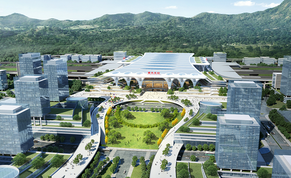以重慶東站鐵路綜合交通樞紐的設(shè)計(jì)為例,該樞紐在設(shè)計(jì)時(shí)以城市綜合交通中心為核心,樞紐及周邊布置商業(yè),強(qiáng)化站城聯(lián)系,融合交通、商業(yè)、餐飲、休閑、文化、娛樂、景觀等多種功能于一體進(jìn)行規(guī)劃建設(shè),形成統(tǒng)一開放的“山、景、城”融合一體的城市公共空間。