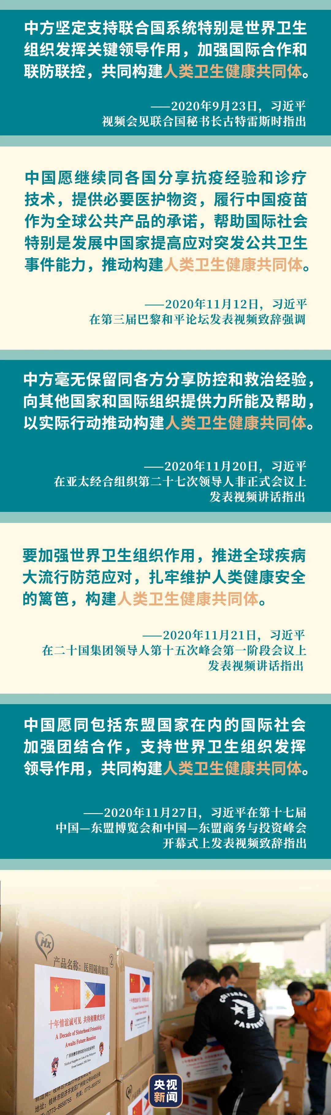 2020年3月,中國(guó)疫情防控的關(guān)鍵時(shí)刻,習(xí)近平主席向法國(guó)總統(tǒng)馬克龍致慰問(wèn)電時(shí)首次提出“打造人類衛(wèi)生健康共同體”的理念。2020年4月2日,在同印度尼西亞總統(tǒng)佐科通電話時(shí),習(xí)近平重申:“中國(guó)將秉持人類命運(yùn)共同體理念,為全球疫情防控分享經(jīng)驗(yàn),提供力所能及的支持,同各國(guó)一道促進(jìn)全球公共衛(wèi)生事業(yè)發(fā)展,構(gòu)建人類衛(wèi)生健康共同體。”