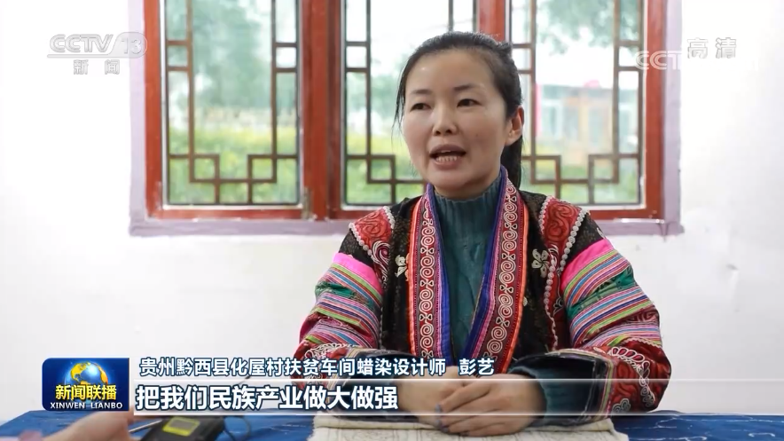 貴州黔西縣化屋村扶貧車間蠟染設計師 彭藝:把我們民族產(chǎn)業(yè)做大做強,讓我們苗族同胞的生活,過得像我們蠟染刺繡一樣精彩。