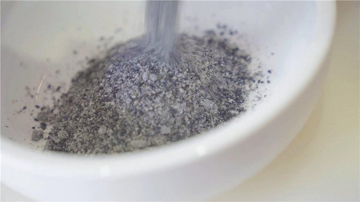 將炒熟的黑芝麻加入白砂糖放入研磨機(jī)。