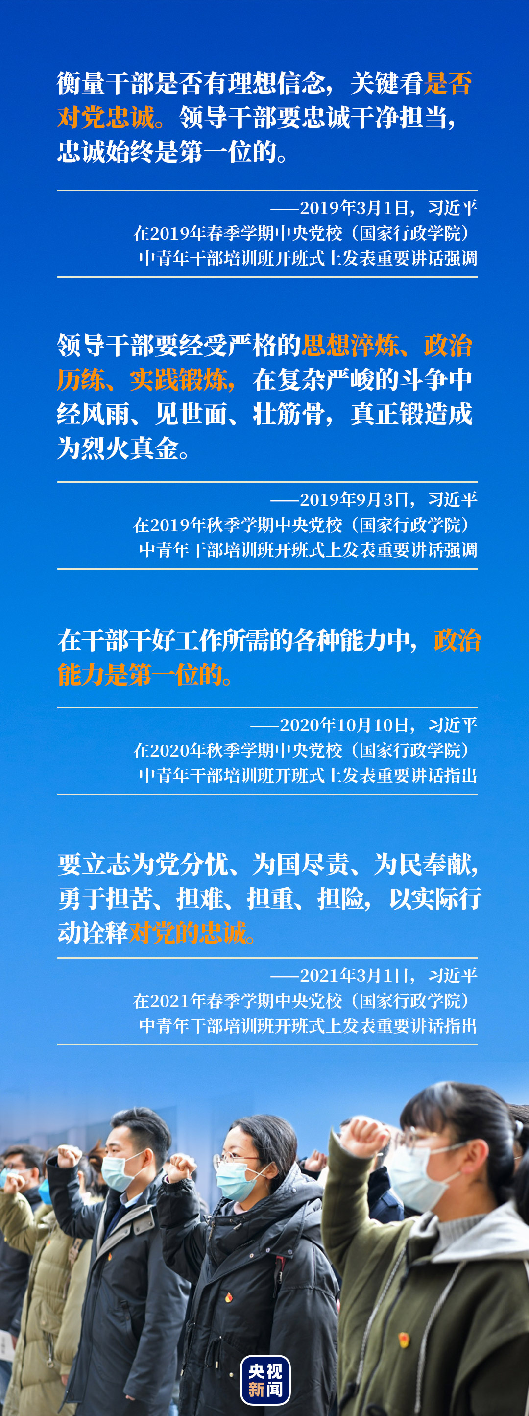 對(duì)黨忠誠(chéng)、提高政治能力是總書記在近幾年中青年干部培訓(xùn)班開(kāi)班式上授課的關(guān)鍵詞。
