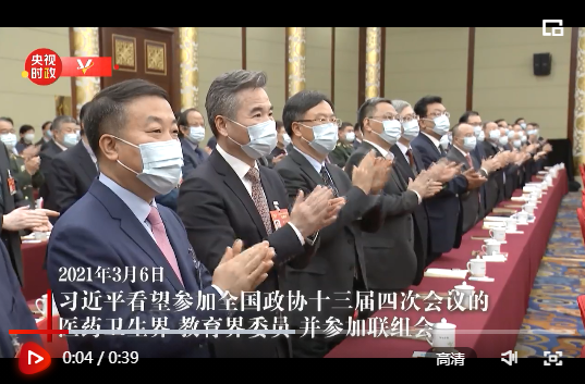6日下午,中共中央總書記、國家主席、中央軍委主席習近平看望參加全國政協(xié)十三屆四次會議的醫(yī)藥衛(wèi)生界、教育界委員,并參加聯(lián)組會,聽取意見和建議。