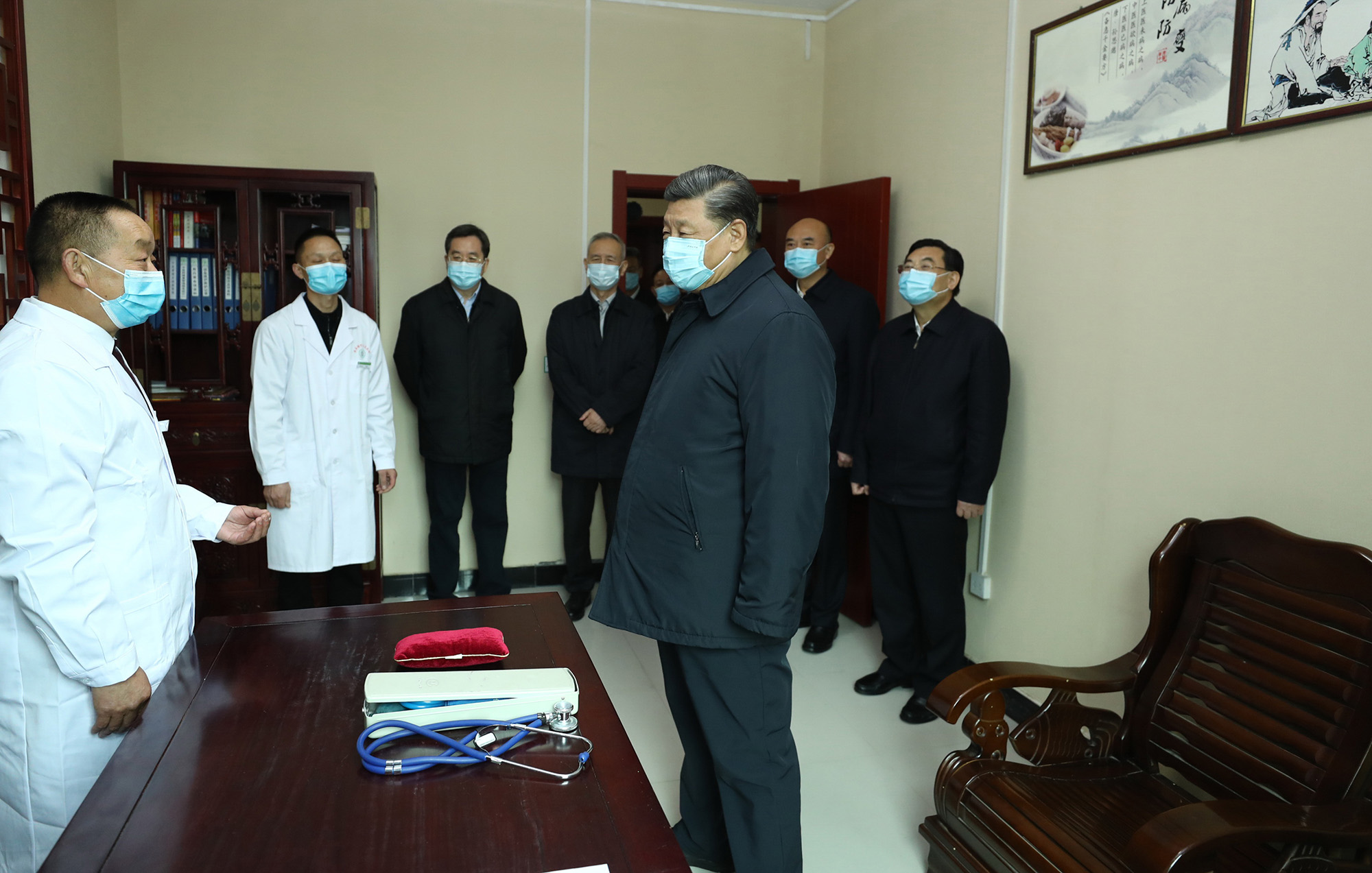 ↑2020年4月21日,習近平在陜西省安康市平利縣老縣鎮(zhèn)衛(wèi)生院,了解基層衛(wèi)生防疫、醫(yī)療保障工作。