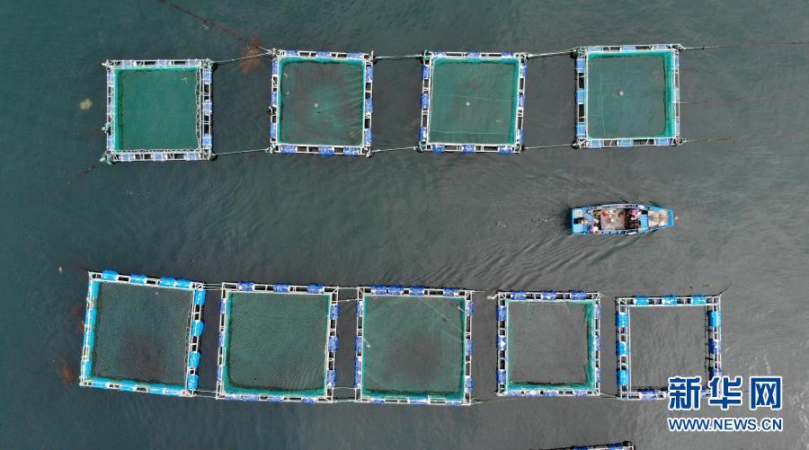 一艘漁船駛過山東省長島綜合試驗區(qū)南隍城島海上養(yǎng)殖區(qū)(2020年8月8日攝,無人機照片)。近年來,山東省長島綜合試驗區(qū)南隍城島在嚴守海洋生態(tài)紅線的基礎上,有序發(fā)展網(wǎng)箱養(yǎng)殖、立體生態(tài)養(yǎng)殖等特色海洋經(jīng)濟。 新華社記者 王凱 攝