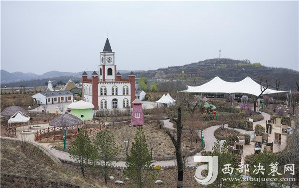 站在南溝村生態(tài)園最高處的觀景臺(tái)俯瞰景區(qū),紅色小樓錯(cuò)落有序、旁邊水庫(kù)綠水盈盈、遠(yuǎn)處山峰層層疊疊、成片的蘋果園劃出整齊的曲線,五顏六色的游樂(lè)設(shè)施裝點(diǎn)著黃土高原,讓人驚嘆山溝溝里竟然還有這樣養(yǎng)眼的好去處。