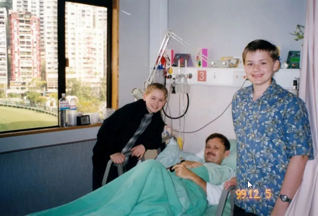 1999年潘維廉在香港一家醫(yī)院接受癌癥手術(shù),和家人在一起。(圖源:人民日?qǐng)?bào)客戶端)
