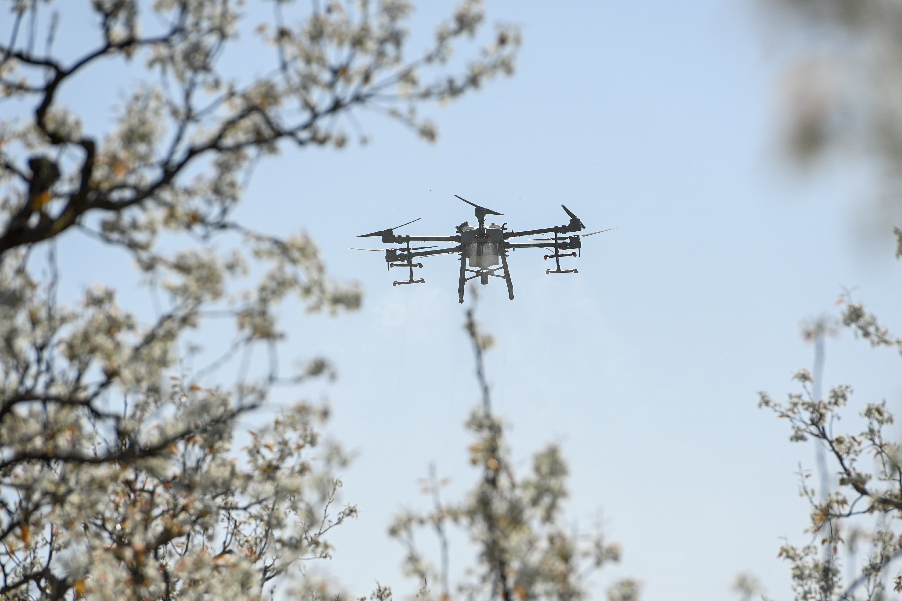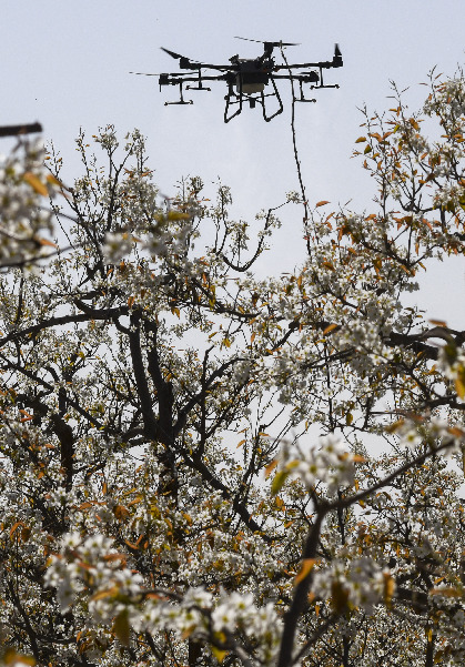 據(jù)中國農(nóng)業(yè)科學(xué)院蜜蜂研究所介紹,這種技術(shù)具有效率高、坐果勻和成本省等特點(diǎn)。1架無人機(jī)可在1小時(shí)內(nèi)為40畝果園授粉,效率是人工的50至60倍。采取蜂機(jī)協(xié)同作業(yè)高效液體授粉技術(shù)可使香梨每畝增產(chǎn)500公斤以上。目前,采用無人機(jī)給梨樹授粉成為越來越多梨農(nóng)的選擇。